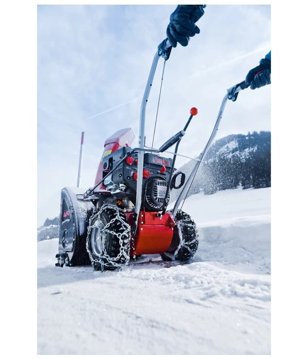 Gerade, wenn Sie Ihren Lebensmittelpunkt in einer schneereichen Gegend haben, werden Sie sich für einen Helfer, wie die AL-KO Schneefräse Snowline 560 II, begeistern. Auch, wenn Arbeit an der frischen Luft per Hand sicher gesund ist, können Sie sich doch mit einer solchen Maschine die Arbeit des Schneeräumens erheblich erleichtern. Dafür sorgt ein kraftvoller Benzinmotor mit 4 kW Leistung. Ein gut funktionierendes Anlassersystem per Seilzug ermöglicht ein optimales Startverhalten. Der Radantrieb ist mit fünf Vorwärts- und zwei Rückwärtsgängen komfortabel zu regeln. Dank grobstolliger Reifen haben Sie bei der Schneefräse Snowline 560 II von AL-KO zudem stets eine hervorragende Traktion.