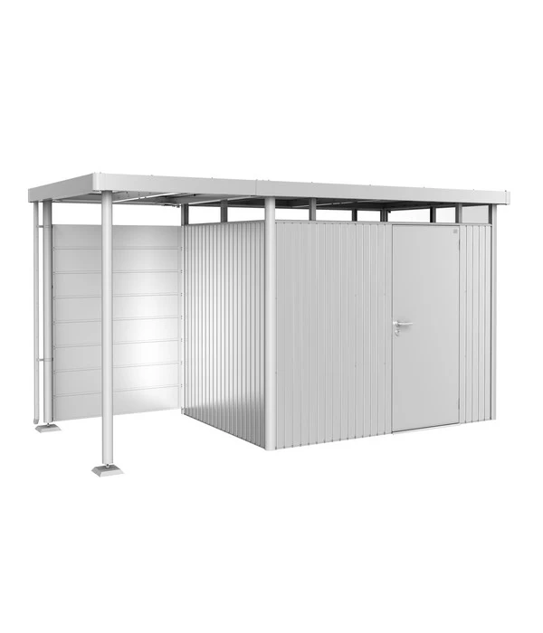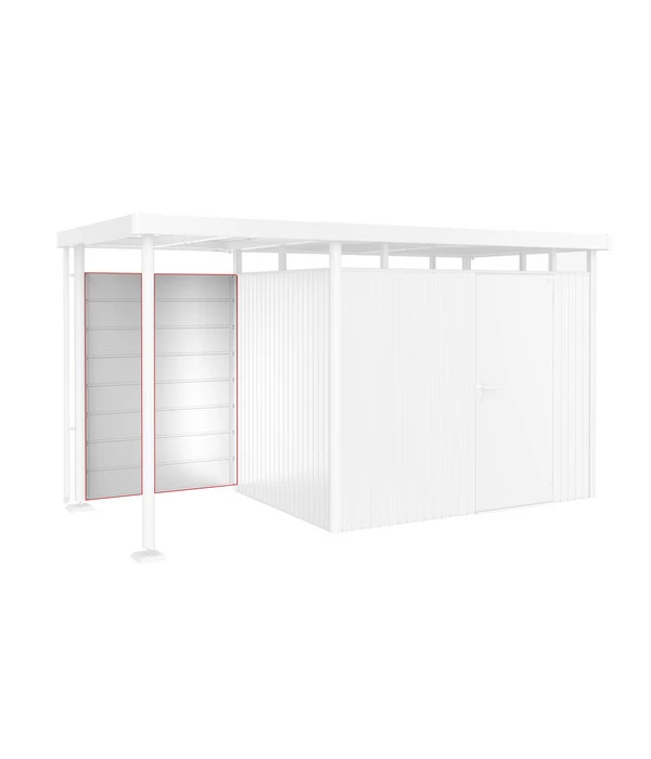 Als stolzer Besitzer des Gerätehauses HighLine® der Marke Biohort sowie des entsprechenden Seitendaches erhalten Sie mit dieser Rückwand attraktive neue Gestaltungsmöglichkeiten. Die Wand lässt sich ganz unkompliziert in die bestehende Grundkonstruktion einbinden. So erweitern Sie diese um eine zusätzliche praktische Wand, die Sie vor neugierigen Blicken und ungemütlichem Wind schützt. Selbstverständlich erstrahlt danach alles in einem harmonischen Look, denn die Biohort Rückwand HighLine® passt im Design genau zu den anderen Elementen der Biohort Reihe. Bei dem Material handelt es sich um feuerverzinkten und damit robusten lackierten Stahl. Freuen Sie sich also über eine ebenso funktionale wie stylische Konstruktion!