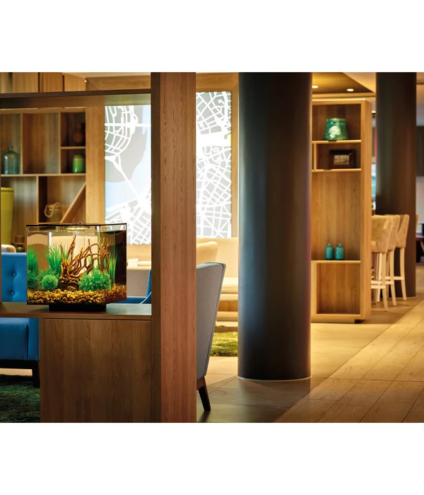 Aus Pflanzen, Korallen, Steinen und andere Deko-Elementen eine Unterwasserlandschaft zu gestalten ist ein faszinierendes Hobby. Und ein neuer Trend der Aquaristik, der sich auch in modern cleane Wohn-Interieurs optimal einfügt bzw. diese mit einer extravaganten Note bereichert. Mit dem biOrb® Aquarium CUBE 30 MCR können wir Ihnen aber ein ganz besonderes Modell anbieten, das Ihre Unterwasserkreationen in verschiedenen Farben aufleuchten lässt: Mal grün, mal blau, mal violett – bis zu 16 Farben können Sie ganz einfach per Fernbedienung auswählen. Und das ist noch lange nicht alles. Sie bestimmen per Fernbedienung auch, wann es Tag und wann es Nacht ist in Ihrer Unterwasserwelt. Bis zu 4 Zeitzyklen lassen sich ebenfalls ganz bequem programmieren und bei Bedarf ändern. Gönnen Sie sich für Ihren Einstieg in die Nano-Aquaristik etwas Besonderes: das biOrb® Aquarium CUBE 30 MCR! Es kommt als Komplett-Set zu Ihnen, so dass Sie gleich starten können!