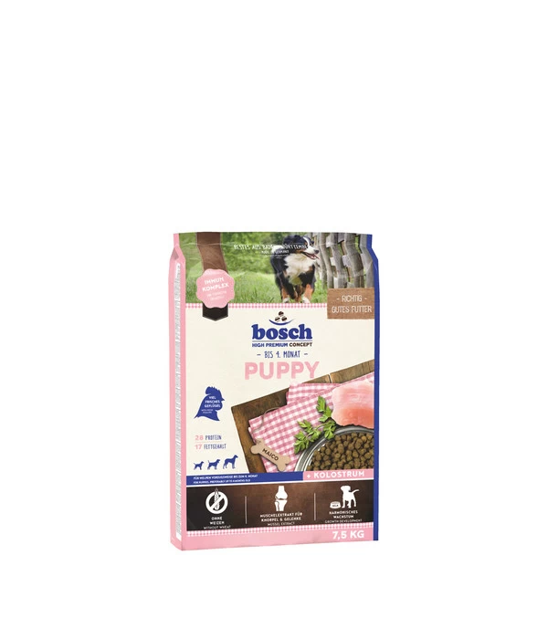Kolostrum ist die erste Milch, die Muttertiere gleich nach der Geburt produzieren und die besonders reich an wertvollen Vitalstoffen ist. Vitalstoffe wie Proteine, Enzyme, Vitamine, Mineralien und Aminosäuren, die im bosch Trockenfutter für Hunde High Premium Concept Puppy enthalten sind und die Ihre Welpen für eine gute Entwicklung brauchen.