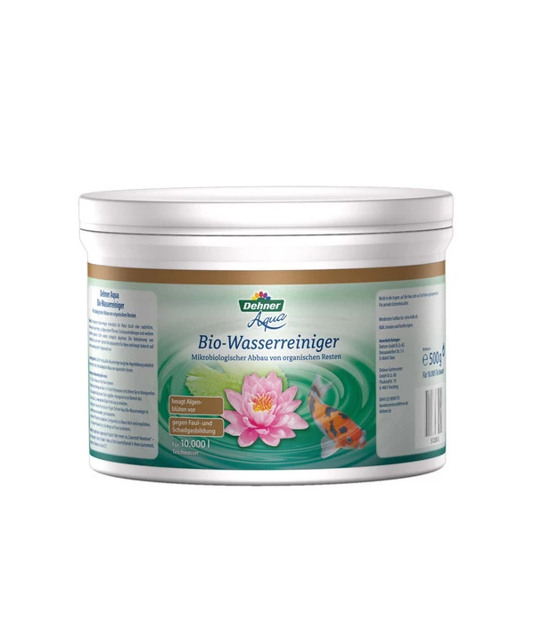 Ein Gartenteich ist immer ein besonders schöner Blickfang, aber nur wenn dieser auch Algenfrei ist. Vor allem nach den kalten Wintermonaten kann Ihr Gartenteich von Algen übersäht sein. Unser Dehner Aqua Bio-Wasserreiniger unterstützt die Natur durch eine natürliche, mikrobiologische Wasserreinigung. Mit unserem Dehner Aqua Bio-Wasserreiniger werden abgesunkene Pflanzen, Fischausscheidungen sowie weitere abgestorbene organische Stoffe biologisch abgebaut und stellen somit keine Belastung für die Natur dar. Da die Nährstoffe durch unseren Dehner Aqua Bio-Wasserreiniger reduziert werden, führt dies wiederrum zu einem verminderten Nahrungsangebot für Algen. So wird auf natürliche Art und Weise der Algenwuchs vorgebeugt Mit unserem Dehner Aqua Bio-Wasserreiniger erhalten Sie einen sauberen, algenfreien Gartenteich der ein garantierter Blickfang ist.