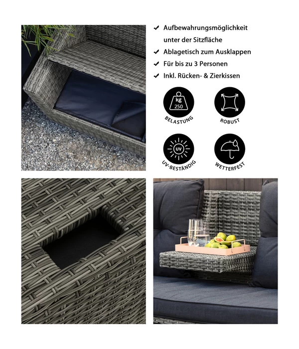 Dehner Flecht-Truhenbank Föhr, 3-Sitzer