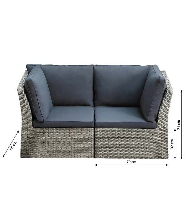 Das Outdoormöbel-Set aus dem Hause Dehner besteht aus den pflegeleichten sowie witterungsbeständigen Materialien Aluminium, Polyester und Kunststoff und kann auch nach der Saison unter einer passenden Abdeckung draußen stehen bleiben. Lediglich die Kissen sollten Sie bei Regen oder Schlechtwetter im Trockenen aufbewahren. So stellen Sie sicher, dass Sie möglichst lange Freude an diesem hochwertigen Möbelset haben. Übrigens: Auch die Reinigung der Materialien ist kinderleicht, denn dafür benötigen Sie nur ein feuchtes Tuch. Profitieren auch Sie von der Optik und der hochwertigen Verarbeitung des Sets und kaufen Sie die Dehner Geflecht-Lounge Rom!