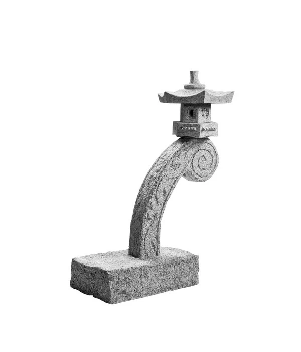 Die Laterne steht auf einem Sockel und auf einem bogenförmigen Element, das im oberen Bereich mit einer adretten schneckenartigen Oberflächenstruktur versehen ist. Durch das Material Granit wirkt das Beleuchtungsobjekt massiv, ohne einen schwerfälligen oder gar plumpen optischen Eindruck zu hinterlassen – dafür sorgen die wunderschönen, detailreichen Verzierungen.