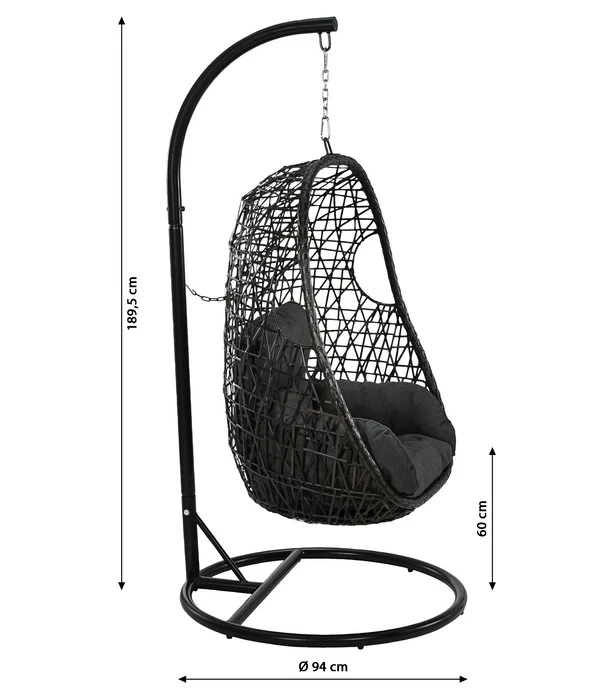 Der Dehner Hängesessel ‘Hawaii‘ hat ein massives Gestell aus pulverbeschichtetem, rostfreiem Stahl, das für die nötige Stabilität und Sicherheit sorgt; der Sessel besteht aus hochwertigem Kunststoffgeflecht. Dabei handelt es sich um moderne, elastische Kunstfasern, die wie echtes Rattan aufwändig von Hand geflochten werden. Das Kunststoffgeflecht ist nicht nur strapazierfähig, sondern auch wetter– und UV-beständig. Sie können Ihren Dehner Hängesessel ‘Hawaii‘ also unbesorgt unter freiem Himmel stehen lassen. Außerdem ist das Kunststoffgeflecht pflegeleicht. Beste Voraussetzungen also, dass Ihnen der Schwebesessel keinerlei Stress, sondern nur viele Jahre Freude und Entspannung bereiten wird.