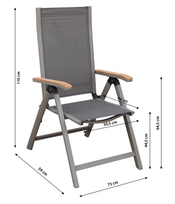 Für die außergewöhnliche Bequemlichkeit, die Ihnen der Klappstuhl ‚Colmar‘ bietet, ist in erster Linie das moderne Kunststoffgewebe Textilene verantwortlich. Denn dieses Gewebe ist einerseits elastisch genug, dass es sich sanft der Körperform anpasst, andererseits ist es so formstabil, dass es nach einer Belastung wieder in seine Ursprungsform zurückgeht. Doch auch die 110 cm hohe Rückenlehne spielt eine tragende Rolle für das bequeme Sitzgefühl, denn die Rückenlehne ist mehrfach verstellbar, so dass jeder im Klappstuhl ‚Colmar‘ genau die Sitzposition für sich finden wird, die ihm im Moment am angenehmsten ist.