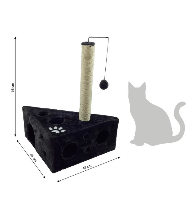 Beim Dehner Kratzbaum Tammy kommt bei Ihrer Katze bestimmt keine Langeweile auf. Der Katzenkratzbaum hat trotz seiner geringen Größe von 45 x 68 x 45 cm (B x H x T) viel zu bieten! Neben einem mit Sisal umwickelten Stamm, an dem Ihre Katze ihrem Kratzbedürfnis nachgehen und sich der wichtigen Krallenpflege widmen kann, hängt ein drehbarer Spielzeuganhänger mit einem Spielball am Gummiband. Unten am dreieckigen Fuß befindet sich eine Kuschelhöhle, die außen mit Plüsch und innen mit Fleece bezogen ist. In die gemütliche Höhle kann sich Ihre Schmusekatze zurückziehen oder mit dem dort versteckten Katzenspielzeug am Gummiband spielen. Viel Abwechslung und pures Spielvergnügen bietet dieser in Dehner Markenqualität gefertigte Dehner Kratzbaum Tammy jeder Katze. Gerade wegen seiner Größe eignet sich der Katzenkratzbaum ideal für kleine Katzen und Kätzchen.