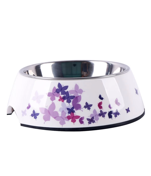Futternapf für Hunde und Katzen, aus Melamin, mit Einsatz aus Edelstahl, spühlmaschinenfest, mit Anti-Rutsch-Aufsatz aus Gummi, versch. Größen