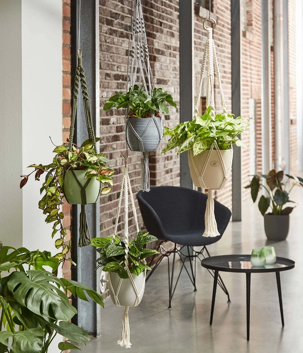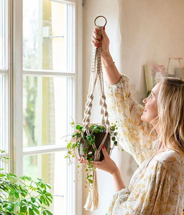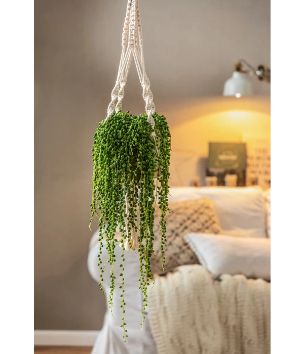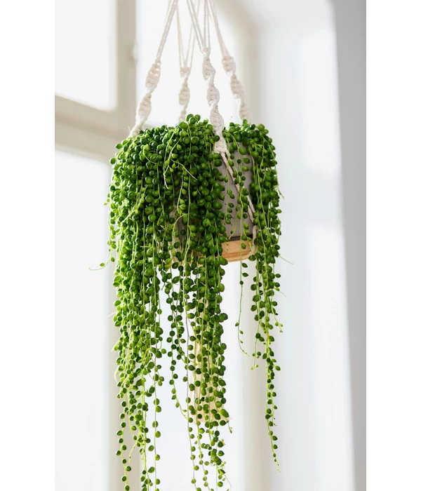 Blumenampeln sind ein wunderschöner Raumschmuck, der Ihre Zimmerpflanzen-Arrangements nach oben hin erweitert. Je nachdem, für welche Art von Pflanze Sie sich für die Ampel aus Makramee entscheiden, können Sie zum Beispiel auch eine dunklere Zimmerecke begrünen. Gerne werden Pflanzenampeln aber auch über das Sofa, in die Nähe des Lieblingssessel oder auch in die Küche gehängt. Ganz gleich, ob Sie sich für Klassiker wie Efeu, Grünlilie oder Wachsblume entscheiden oder ob Sie eine originelle, fleischfressenden Kannenpflanze wählen, alle werden in der Ampel aus Makramee toll zur Geltung kommen.