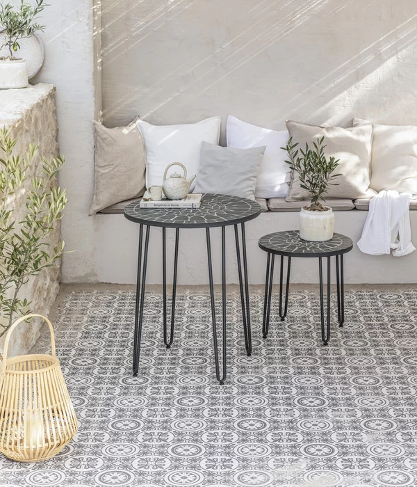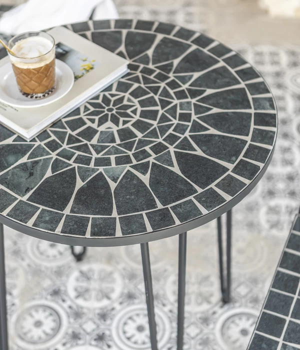 Sie wünschen sich einen schönen und geschmackvollen Tisch für Ihren Außenbereich? Dann wird Ihnen der Mosaiktisch Madeleine von Dehner sicher zusagen. Mit seinem attraktiven Mosaikmuster ist er etwas ganz Besonderes und wertet sicher auch Ihren Garten, den Balkon oder Ihre Terrasse auf. Machen Sie es sich gemütlich und stellen Sie Ihre Kaffeetasse, das Weinglas oder den Eisbecher auf dem hübschen Gartenmöbel ab. Dank der verwendeten hochwertigen Materialien bleibt Ihnen der Tisch auch über viele Jahre erhalten, sodass Sie draußen viele angenehme Stunden verbringen werden.