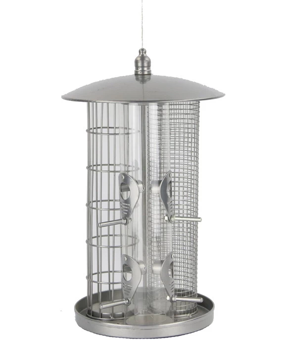 Futterspender, aus Metall, mit drei separaten Futtersäulen für Streufutter, Erdnüsse und Meisenknödel, zum Aufhängen