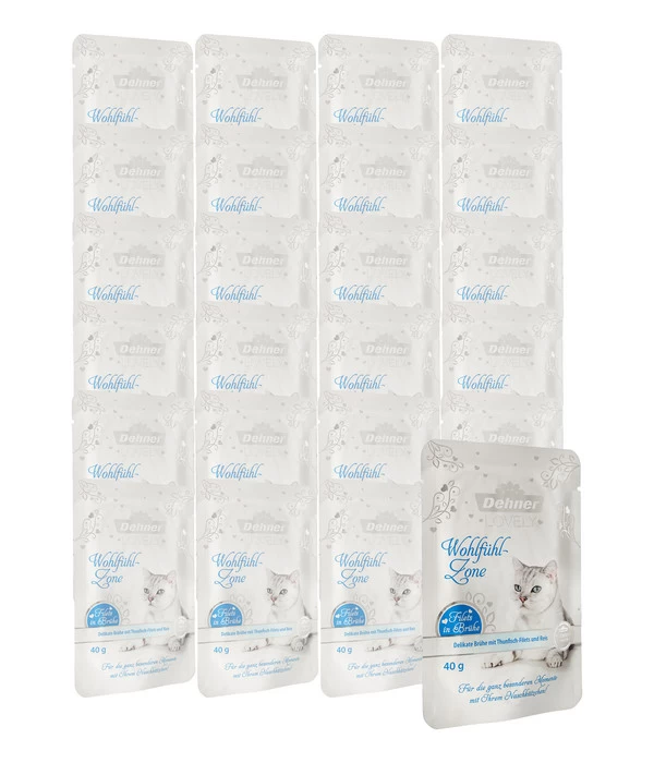 Gerne beobachten Sie stolz, wie geschickt und flink Ihre Katze klettern kann, wie reaktionsschnell sie beim Jagen ist (auch wenn es nur die Fellmaus in der Wohnung ist) und wie sie in Sekundenbruchteilen ihre gefährlichen Krallen ausfahren kann, um die Beute festzuhalten. Und dann wieder gibt es diese wunderbaren Momente trauter Zweisamkeit, wenn Ihre Samtpfote nur zärtliche Schmusekatze ist und sich von Ihnen ausgiebig streicheln lässt. Krönen Sie diese besonderen Momente in Zukunft mit einem erlesenen Snack, der auch das Wohlbehagen Ihrer Katze nochmals steigern wird. Dehner Premium Lovely Katzensnack Filets in Brühe Wohlfühl-Zone ist eine Gourmet-Komposition aus besten Zutaten, schonend zubereitet und in einer leckeren Brühe serviert, so dass der Snack auch wunderbar saftig ist, was Ihre Feinschmeckerkatze besonders liebt. Verwöhnen Sie Ihr Schätzchen ruhig täglich mit diesem Premiumsnack, der Ihnen und Ihrer Katze besondere Genussmomente schenken wird.