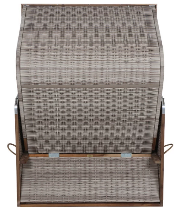 Das stabile Gestell besteht beim Strandkorb Greenline 175 aus FSC®-zertifiziertem Akazienholz, also einem Holz, das von Natur aus perfekt auf ein langes Leben unter freiem Himmel ausgerüstet ist; das Geflecht ist aus ebenfalls wetterfestem Kunststoff. Für die Sitz- und Rückenpolster wie die kleinen Kuschelkissen wurde eine hochwertige, strapazierfähige Polyester-Qualität. Noch ein Pluspunkt: Sie können die Kissen komplett herausnehmen und bei Bedarf waschen.