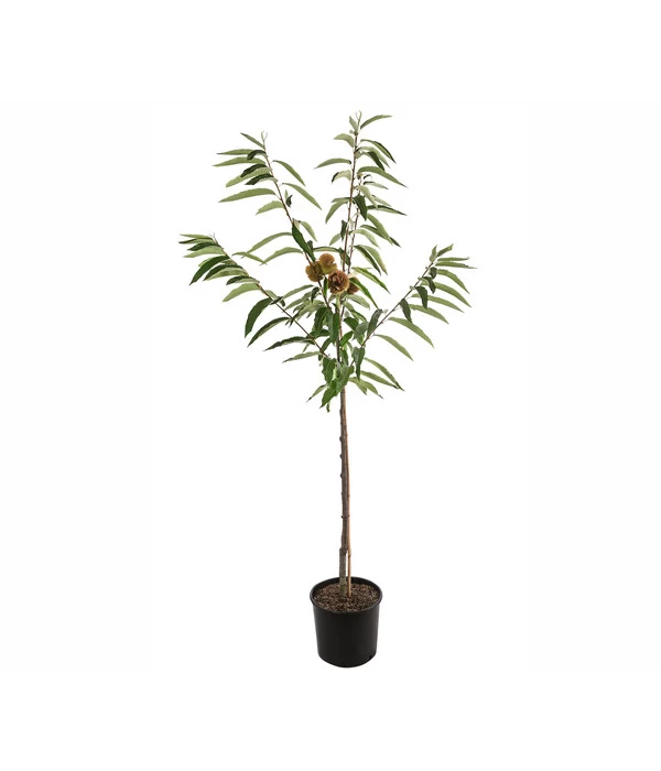 Achten Sie beim Einsetzen darauf, dass die Pflanze hoch und breit wird und sie nicht zu nahe am Haus platziert wird. Die Erde sollte tiefgründig und leicht sauer sein. Außerdem bevorzugt ‚Bouche de Betizac‘ einen sonnigen bis halbschattigen Standort, um die Kastanien reifen zu lassen. Im Gegensatz zu anderen Esskastanien trägt diese Sorte relativ früh die ersten Früchte und bringt dann auch regelmäßige Erträge. Es handelt sich um eine gesunde und gegen viele Krankheiten resistente Sorte, die Ihnen viele Jahr über Freude bereiten wird. Der Baum trägt männliche und weibliche Blüten zugleich. Sie sollten allerdings trotzdem eine andere Sorte als Befruchter in der Nähe haben, da so die Erträge stark gesteigert werden.
