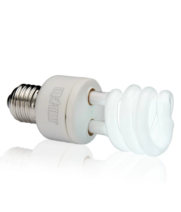 Mit einem optimalen Lichtspektrum für hohen UVB-Lichtbedarf von in der Wüste lebenden Reptilien hat sich die Exo Terra® Reptile UVB 150 Terrarienlampe absolut bewährt. Langjährige Terraristikfreunde kennen die qualitativ hochwertige, besonders stromsparende Terrarien-Kompaktlampe vielleicht noch mit der Bezeichnung Exo Terra® Repti Glo 10.0. Mit der Exo Terra® UVB 150 sichern Sie sich für Ihr Terrarium bei minimalem Stromverbrauch in Sachen sichtbarem Tageslicht die Maximal-Power. Verwenden können Sie die Exo Terra® Reptile UVB 150 UV-Kompaktlampe übrigens in jeder normalen E27 Fassung, da das Vorschaltgerät bereits in der Terrarienlampe integriert ist. Freuen können Sie sich bei der Terrarienlampe Exo Terra® UVB 150 auch auf eine besonders lange Lebensdauer und auf eine dauerhaft stabile UV-Emission. Wenn Sie Ihre aus Wüstenregionen stammenden Reptilien also perfekt mit Licht versorgen möchten, ist die UV-Kompaktlampe Exo Terra® UVB 150 eine sehr gute und überzeugende Wahl. Denn ihr UV-Spektrum entspricht genau den Verhältnissen des Sonnenlichts in Wüstenregionen. Die Exo Terra® UVB 150 UV-Kompaktlampe versorgt Ihre Tiere mit dem notwenigen Maß an UVB-Strahlung, die eine so wichtige Rolle beim lebenswichtigen Kalzium-Stoffwechsel von Reptilien spielt. Dabei beträgt die Wirkungsreichweite der UV-Strahlung bei der Kompaktlampe von Exo Terra® rund gute 50 cm. Haben Sie Ihr Terrarium mit eine dichten Netzgitterabdeckung versehen, können Sie sogar dann die Exo Terra® UVB 150 Kompaktlampe verwenden.