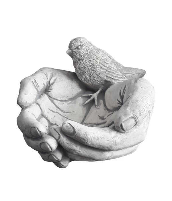 Der Aufenthalt im eigenen Garten, auf der Terrasse oder auf dem Balkon ist ein wunderbarer Luxus. Genießen Sie die Besinnlichkeit und die Entspannung, die Ihnen Ihr Wohlfühlort bietet. Die Pflanzen blühen und die Vögel zwitschern. Mit Glück lässt sich ein Vöglein in Ihrer Nähe nieder, um fast sofort wieder fort zu flattern. Laden Sie doch die gefiederten Freunde mit einer Stein-Vogeltränke von fantasieco zu längerem Verweilen ein. Die Tränke, mit den zu einem Gefäß geformten Händen und dem kleinen Vogel ist liebevoll gestaltet und ein hübscher Blickpunkt. Beobachten Sie, wie das Vogelbad zu einem Tummelplatz unterschiedlichster Vogelarten wird. Der Anblick wärmt nicht nur Ihre Seele, sondern Sie leisten mit der Stein-Vogeltränke von fantasieco auch einen kleinen Beitrag zum Naturschutz.