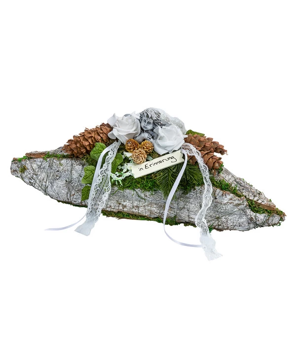 Grabgesteck Aus Rinde, Oval, Weiß, Ca. B40/H15/T14 Cm