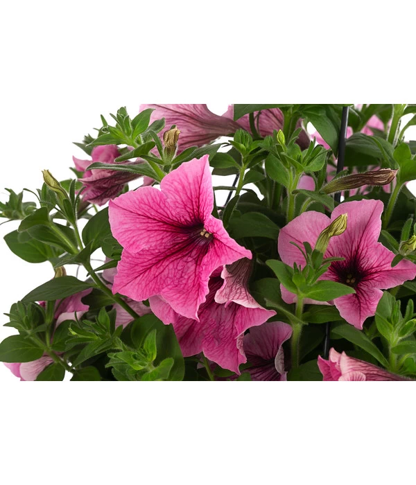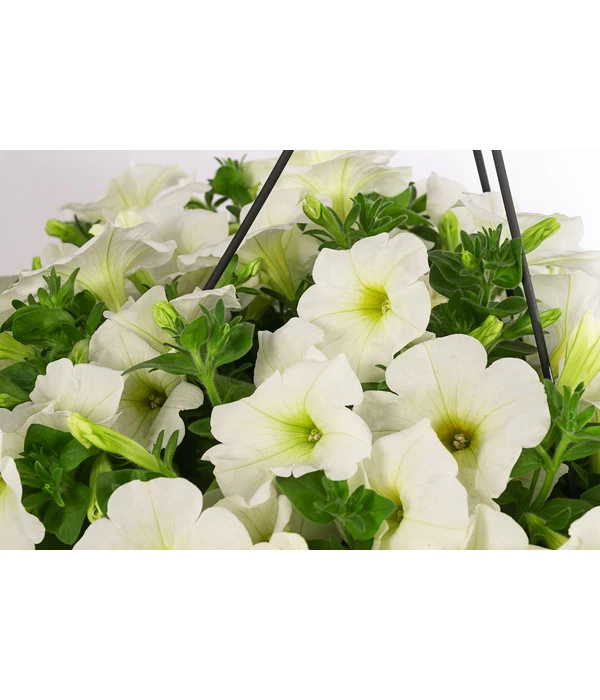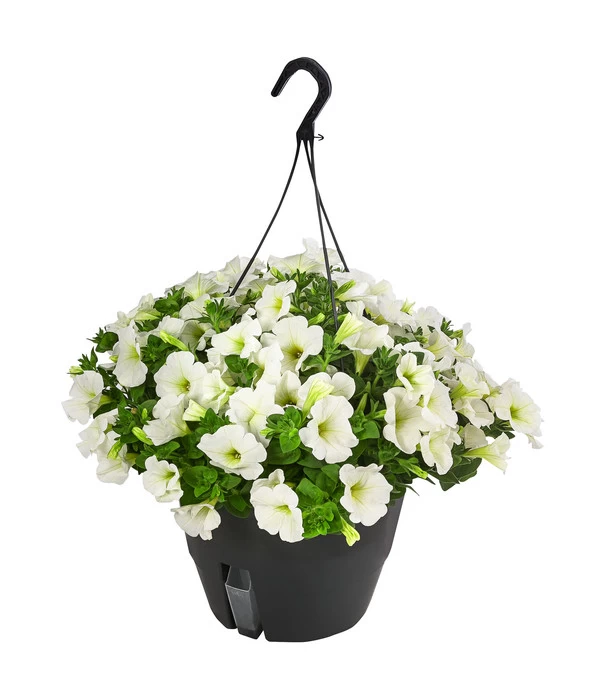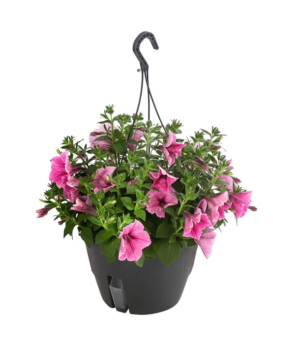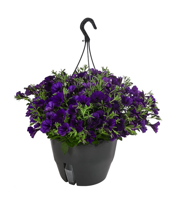 Für ihre Fans gibt es keine Sommerblume, die es in puncto Blütenreichtum und Leuchtkraft mit den Petunien aufnehmen kann. Das Farbenspiel der Petunien ist wirklich einzigartig und die mittelgroßen Trichterblüten leuchten in Weiß, in verschiedenem Rosatönen, in Blau oder Lila. Dieses Farbenfeuerwerk wird nur noch von der schier unglaublichen Blütenfülle übertroffen, die zu manchen Zeiten das Blattgrün komplett in den Hintergrund drängt. Und die Faszination hält einen ganzen Sommer, denn die Petunie beginnt im Mai ihre ersten Blüten zu entfalten und hat auch im Oktober noch nichts von ihrer Anziehungskraft verloren. Besonders gut kommen die prächtigen Blütenkaskaden in einer Hängeampel zur Geltung. Sie werden begeistert sein, wie die Hängepetunie-Ampel Ihrem Balkon, der Terrasse oder auch dem Hauseingang ein sommerlich beschwingtes Flair verleihen wird.