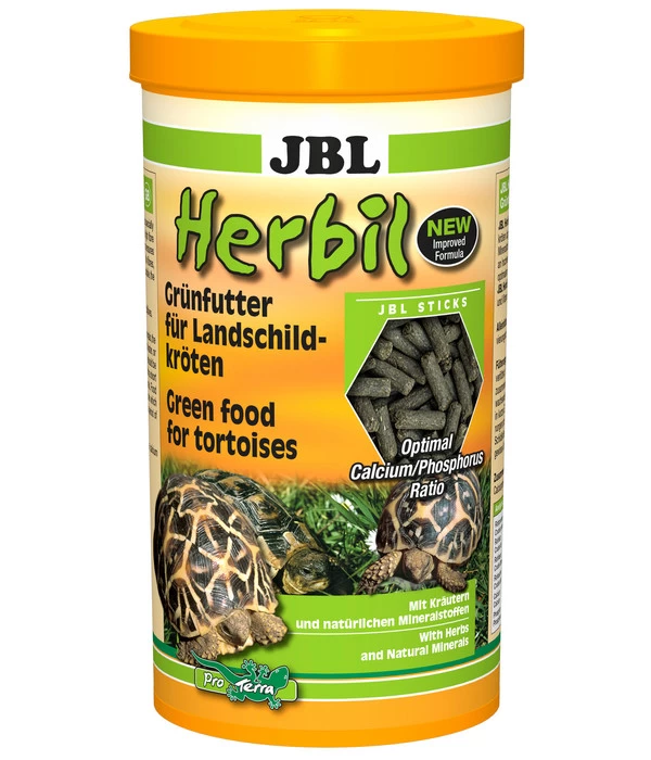 Das richtige Futter für Ihre Landschildkröten zu finden ist gar nicht so einfach. Denn nur, weil es gesund für sie ist, fressen es Ihre Lieblinge noch lange nicht. Deshalb wurde bei der Entwicklung des JBL Agivert Herbil Neu Landschildkrötenfutters größten Wert auf Akzeptanz gelegt. Das Ergebnis? Die meisten Landschildkröten sind ganz begeistert davon. Aber die hochwertigen Grünfutterpellets sind auch wirklich schmackhaft. Sie bestehen aus besten Gräsern und Kräutern und liefern reichlich wertvolle Vitamine und Mineralstoffe. Ganz ohne künstliche Konservierungs- und Farbstoffe! Durch seinen hohen Raufaseranteil und einen niedrigen Eiweißgehalt passiert das Futter für Landschildkröten Darm Ihrer Tiere sehr langsam und kann dadurch besonders gut verwertet werden. Auf diese Weise versorgt JBL Agivert Herbil Neu Ihre Lieblinge mit allem, was sie für Wohlbefinden und Gesundheit brauchen. Frisches Grün ist aber natürlich durch nichts zu ersetzen. Wenn Sie also im Sommer ab und zu Gras und Kräuter direkt von der Wiese ernten und damit den Speiseplan erweitern können, umso besser!