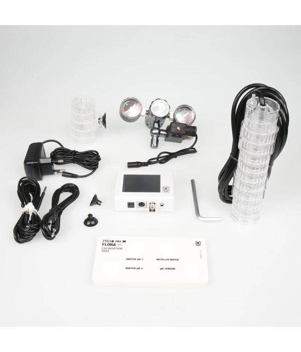 Das JBL PROFLORA CO2 Professional Set V ist mit einem CO2/pH-Computer ausgestattet, der ständig die Co2- und die pH-Werte im Wasser kontrolliert und CO2 nur dann dem Wasser zusetzt, wenn der pH-Wert zu hoch ist. So können Sie sicher sein, dass sich immer die ideale CO2-Menge im Wasser befindet. Das JBL PROFLORA CO2 Professional Set V ist außerdem mit weiteren technischen Details wie Temperatur-Sensor, Alarmfunktion für pH und Temperatur u.v.m. ausgestattet. Die Werte können Sie auf dem modernen Grafik-Display ablesen bzw. mit dem Touchpad individuell ändern. Dank der hochwertigen Schlauchverschraubungen kann der Schlauch nicht abrutschen und ein Rückschlagventil verhindert das Eindringen von Wasser in die Flasche. Das Manometer zeigt den Flaschen- und den Arbeitsdruck.
