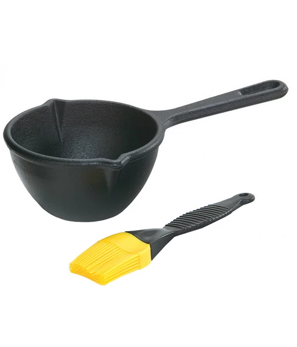 Würzige Bratensoßen, salzige oder fruchtige Dips zum Grillfleisch und Marinaden sind im Lodge Soßen-Set schnell zubereitet. Ob warme oder kalte Mischungen aus abwechslungsreichen Zutaten und aromatischen Gewürzen, im praktischen Set aus dem gusseisernen Topf und dem Pinsel mit Silikonborsten gelingen Soßenkreationen, die Gourmets begeistern. Sämige Soßen ohne Klümpchen zu kochen ist in der hochwertigen Kasserolle genauso einfach wie Guacamole aus Avocadopüree, Tomatenstückchen und Knoblauch, ein Sourcream-Dip zur Folienkartoffel und weitere feine Dips anzurühren. Würzöle für Grillhähnchen lassen sich mit dem Pinsel mit Silikonborsten gleichmäßig auftragen. Mit Soßen aus dem Set wird jedes Essen im Nu zum Hochgenuss.