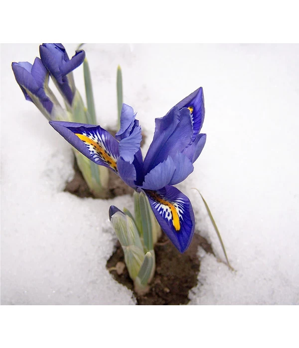 Ein besonderes Highlight unter den Frühjahrsblühern ist die Netzblatt-Iris, auch Zwerg-Iris oder Schwertlilie genannt. Sie gibt alles, sobald die Temperaturen es zulassen, Blätter sind dann erst einmal Nebensache, wenn sie eine Blüte nach der anderen aus dem Boden schiebt. Ihre großen tiefblauen Blüten duften angenehm und haben durch die gelb-weiß geflammte Zunge eine attraktive und gleichermaßen freche Wirkung. Die Iris wird in etwa nur 15-20 cm hoch, doch zeigt sich meist schon Ende Februar, was aber stark vom Witterungsverlauf abhängig ist. Zwar bereichern sie unsere Gärten nur etwa vier Wochen, doch die Irisblüten stillen ganz schnell unseren Hunger nach Farbe und rütteln auch die letzten Menschen auf, die noch immer im Winterblues stecken.