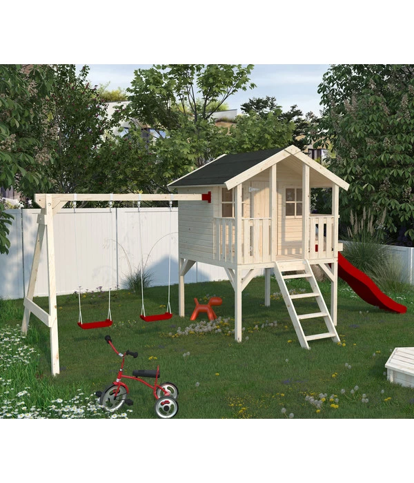 Toben sich Ihre Kinder am liebsten im eigenen Garten aus? Haben Sie Ihren Lieblingen vielleicht bereits das hübsche Spielhaus Toby der Marke Palmako geschenkt, damit sie darin und darum gemeinsam mit Ihren Freunden spannende Abenteuer erleben können? Dann komplettieren Sie die Spielstätte mit der Schaukel Toby desselben Herstellers! Die beiden Sitzbretter ermöglichen es Ihren Kindern, dass sie zu zweit um die Wette schaukeln. Auf diese Weise verbringt Ihr Nachwuchs unzählige Augenblicke voller Spaß und Freude. Zweifelsfrei fällt Ihnen die Montage der Spielgeräte besonders leicht und sie erfolgt rasch, denn die Schaukel lässt sich problemlos an das Spielhaus Toby anbauen.
