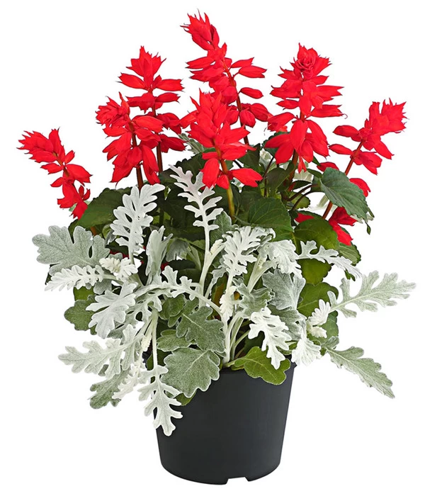Ausdrucksstarkes Pflanzen-Duo: Feuersalbei-Silberblatt-Mix
