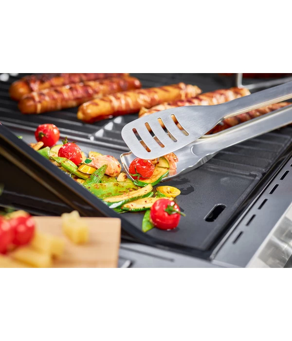 Sie möchten die Ausstattung Ihres Grills erweitern, um für noch mehr Annehmlichkeit beim Braten köstlicher Speisen zu sorgen? Dann präsentiert sich die Rösle Grillplatte Videro bestimmt als perfekte Wahl für Sie. Dieses praktische Accessoire besteht aus hochwertigem Gusseisen und besitzt eine emaillierte Oberfläche, die viel Platz zum perfekten Arrangieren Ihres Bratguts bietet. Die Platte eignet sich für die entsprechenden VIDERO-Grill-Modelle ab der Baureihe des Jahres 2021. So können Sie bei Ihrer nächsten Gartenparty mit der Familie und den Freunden dank der Grillplatte Videro von Rösle auf moderne und komfortable Weise schmackhafte Gaumenfreuden zaubern.