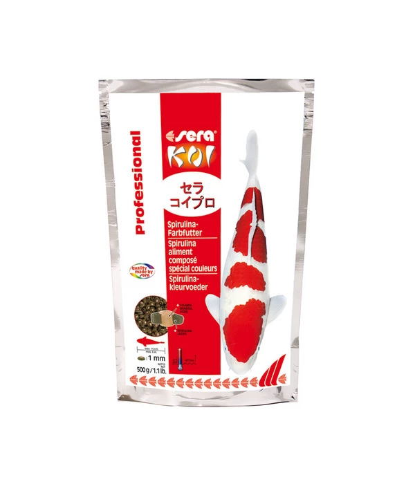 KOI sind vor allem dank Ihrer prächtigen Farbe so beliebt. Damit diese auch besonders kräftig zur Geltung kommen gibt es das sera Koi Professional Spirulina-Farbfutter. In dem sera Koi Professional Spirulina-Farbfutter ist ein besonders hoher Anteil an carotinreichen Spirulina- und astaxanthinreichen Haematococcus-Algen enthalten. Die sorgen für eine einzigarte Farbtiefe bei gleichzeitiger Trennung der Farbzonen und seidigem Glanz. Natürlich sorgt das sera Koi Professional Spirulina-Farbfutter dafür, dass die weißen Zeichnungen nicht unansehnlich gelb werden, sondern bleiben weiterhin reinweiß. Aber auch der Anteil an wichtigen Proteinen sowie wertvollen Vitaminen, Mineralstoffen und Spurenelementen kommen in dem sera Koi Professional Spirulina-Farbfutter nicht zu kurz. Somit wird Ihr KOI mit dem sera Koi Professional Spirulina-Farbfutter mit allen wichtigen Nährstoffen versorgt, sodass dieser ein gesundes Wachstum und ein glückliches KOI-Leben führen kann. Mit dem sera Koi Professional Spirulina-Farbfutter holen Sie sich ein Strahlen in die Augen und strahlende KOI in Ihren Teich.