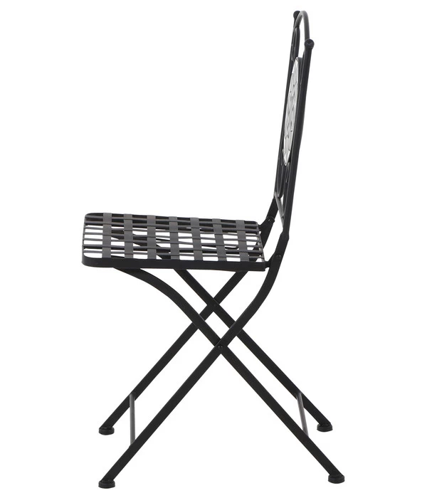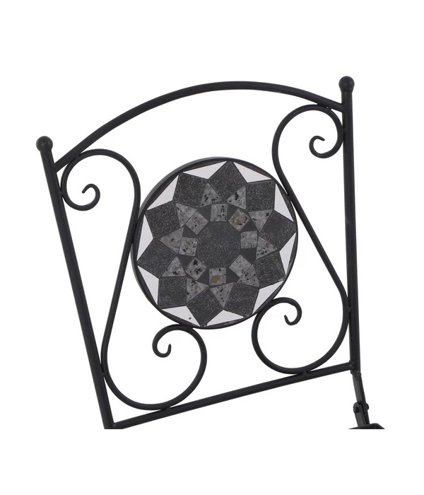 Die Kunst des Mosaiksetzens hat eine lange Tradition im Mittelmeerraum. Für den Siena Garden Klappsessel Como werden die Steinchen in verschiedenen Grau-Nuancen zu geometrischen Mustern zusammengesetzt, die jeden Stuhl zu einem kleinen Kunstwerk machen. Die Dreiecke und Quadrate bestehen aus hochwertiger Keramik und bilden einen schönen Kontrast zu den geschwungenen Stahlstreben der Rückenlehne. Ergänzt wird die dekorative Lehne von einer Sitzfläche aus stabilem Stahlgeflecht.