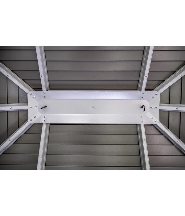 Einmal aufgebaut wird der Sojag Pavillon Striano eine exklusive Konstante in Ihrem Gartenreich bilden, denn Sie müssen ihn dank der massiven Konstruktion für den Winter nicht abbauen. Witterungsresistentes, pulverbeschichtetes Aluminium mit einer Pfostenstärke von 7,6 cm trägt ein enorm stabiles Dach aus galvanisch verzinktem Stahlblech, das absolut wasserdicht ist und intensive Sonneneinstrahlung wie auch Regen, Schnee und Kälte locker aushält. Selbst wenn Sie in einer schneereichen Region wohnen, müssen Sie sich keine Sorgen machen, denn der Sojag Pavillon Striano ist außerdem auf eine außergewöhnliche Schneelast von 150 kg/m² eingestellt.
