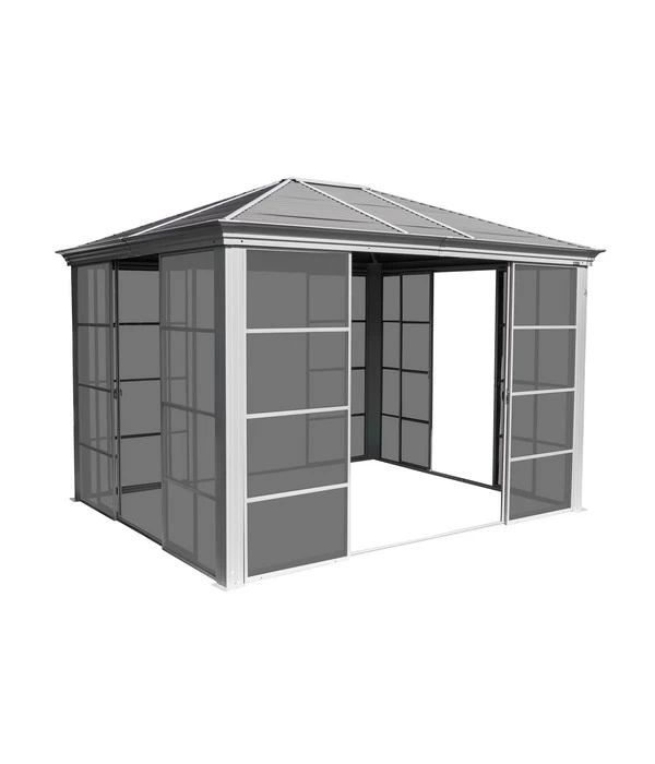 Der Sojag Pavillon Striano ist nämlich nicht nur mit vier praktischen Doppelschiebetüren ausgestattet, die Ihnen das Betreten von allen 4 Seiten komfortabel gestatten. Der Gartenpavillon kann außerdem mit Alu-verstärkten Moskitonetzen punkten. Und natürlich werden nicht nur lästige Stechmücken und Fliegen von den Moskitonetzen abgehalten, sondern auch die gefährlichen Wespen, die sich vor allem im Spätsommer für alle Speisen und Getränke interessieren, die Sie Ihren Lieben draußen servieren.