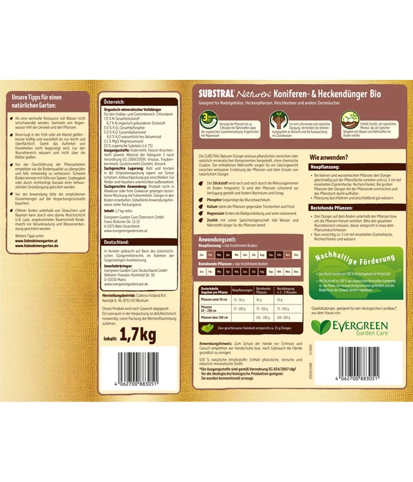 Damit Ihre Immergrünen auch wirklich immer grün bleiben: Substral® Naturen® Koniferen und Heckendünger, 1,7 kg