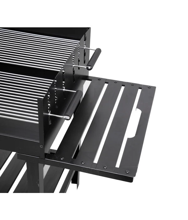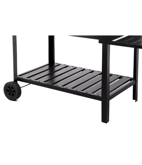 Eine knusprige Bratwurst oder ein leckeres Steak ist zweifellos ein besonderer Genuss: Nicht umsonst erfreut sich das Barbecue als Zubereitungsmethode für Fleisch, Fisch und Co. in Deutschland einer großen Beliebtheit. Wer dabei auch in Sachen Qualität nichts dem Zufall überlassen möchte, ist mit dem tepro Holzkohle-Grillwagen Atlanta genau richtig bedient. Gleich zwei verchromte Grillroste mit den Maßen 98 x 28 cm fungieren hier als Ablagefläche für das gewünschte Grillgut. Dank der Möglichkeit, beide Roste in der Höhe zu verstellen, behalten Sie jederzeit die volle Kontrolle über die genaue Grilltemperatur. Je nach Bedarf variiert die Arbeitshöhe des tepro Holzkohle-Grillwagens somit zwischen angenehmen 77 und 88 cm. Auf den lackierten Boden und Seitenablagen bereiten Sie zudem Salate und Beilagen direkt am Grill vor, alternativ lagern Sie hier Ihr Lieblingsfleisch bis zur Zubereitung auf dem Grill auf komfortable Art und Weise. Getragen wird das hochwertige Gerät von vier lackierten Beinen, wovon zwei mit Kunststoffrädern ausgestattet sind. Der tepro Holzkohle-Grillwagen Atlanta verfügt außerdem über ein außerordentlich hohes Kohlefassungsvermögen von maximal 5,0 Kilogramm.