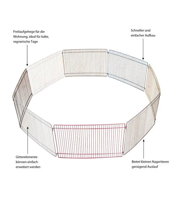 Mit dem Trixie Freilaufgehege haben Sie die perfekte Lösung gefunden, wenn Ihre Tiere mal keinen Freilauf im Freien bekommen können. Der Trixie Freilaufgehege eignet sich ideal für innerhalb der Wohnung und bietet Ihren kleinen Lieblingen genug Platz zum Spielen und Toben. Mit dem Trixie Freilaufgehege können Ihre Nager unbeschwert in der Wohnung Laufen, ohne dass diese Kabel oder sonstiges anknabbern.