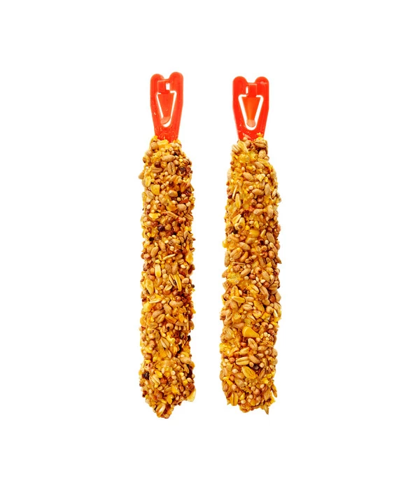 Schmackhafte Knabberstangen im Zweierpack von Vitakraft sind ein Knabberspaß mit süßen Früchten für Hamster. Durch die Fütterung mit Vitakraft-Stangen muss sich Ihr Tier sein Futter Stück für Stück im Hamsterkäfig erarbeiten, eine großartige Beschäftigung. Mit der abgestimmten Körnermischung und den köstlichen Früchten wird der Hamster mit allen wichtigen Vitaminen und Mineralien versorgt. Am Cliphalter können Sie das Futter kinderleicht im Hamsterkäfig befestigen.