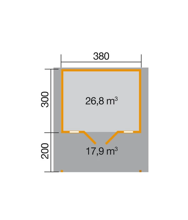 Bemaßung: Gesamthöhe 262 cm, Seitenwand 210 cm (ab Oberkante Fundament)