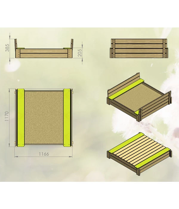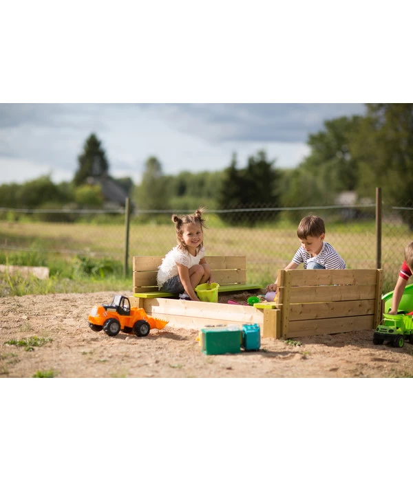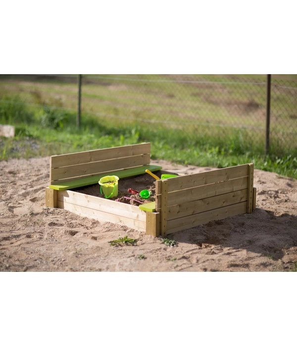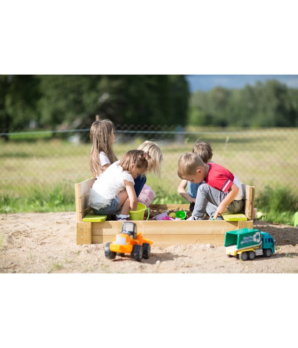 Die Abdeckung aus Holz hält den Sand rein: die Katzen aus Nachbarschaft haben keine Chance und auch das Laub kommt nicht herein. Wenn der Sandkasten ausgeklappt wird, können die Holzabdeckungen als Sitzlehnen genutzt werden. Der Rücken Ihrer Kinder findet optimalen Halt und so wird für ihre Gesundheit von Anfang an gesorgt. Die Sandgrube ist sehr kompakt, hat aber alles, was man braucht. Mit Wendi Toys Sandkasten Deluxe schaffen Sie den perfekten Einstieg in Aufbau Ihres ganz persönlichen Kinderparadieses. Holen Sie den tollen Sandkasten für eigenen Kinderspielplatz im Garten.