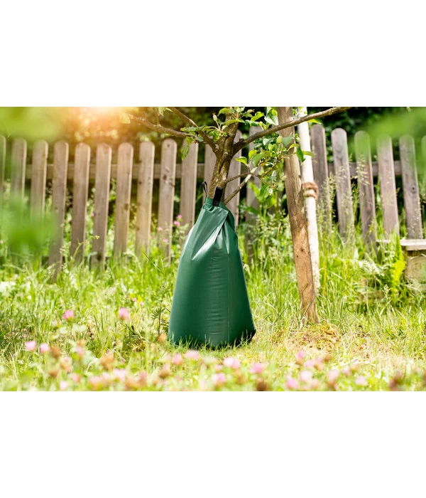Das Label Windhager hat den Baumbewässerungsbeutel mit einem praktischen Reißverschluss ausgestattet, mit dem Sie ihn um den Stamm befestigen können. Dank dieses Details lassen sich auch mehrere Beutel ringförmig miteinander verbinden. Dadurch eignet sich das Bewässerungssystem nicht nur für kleine Bäume, sondern auch für solche mit einem größeren Stammdurchmesser. In puncto Materialqualität begeistert der Beutel ebenfalls rundum. Er besteht aus PVC und ist dadurch strapazierfähig und lange haltbar. Greifen Sie zu und bestellen Sie den Baumbewässerungsbeutel von Windhager gleich online!